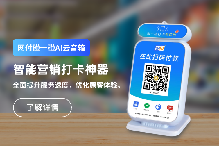 抖音扫码支付。升级后的网付AI云音响,除了可以支持微信支付跟支付宝支付之外,还支持抖音扫码支付。目前这个功能在市面上其他的一些碰一下营销收款码中,很多都是不具备的。用抖音扫码支付之后,会弹出一个商家的视频,顾客只需点击一下,就可以一键转发这个视频,为店铺带来更多的曝光。